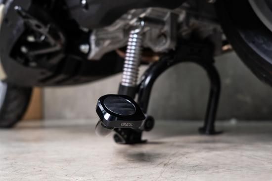 ヤマハ NMAX(2025年モデル)対応のセンタースタンドフットベースです。純正スタンドにボルトオン装着するだけで、足元の安定性を向上させるとともに、アルミ削り出しの高級感あるデザインでドレスアップ効果も発揮。全5色から選べるカラーで、車体とのコーディネートも自由自在です。