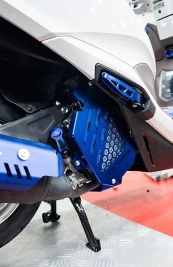 ホンダ PCX125(JK05)および PCX160(KF47)2025年モデルに対応したアルミ製ラジエーターガードです。蜂の巣状デザインの通気構造とスタイリッシュな造形で、冷却性能を損なうことなくラジエーターをしっかりと保護します。
